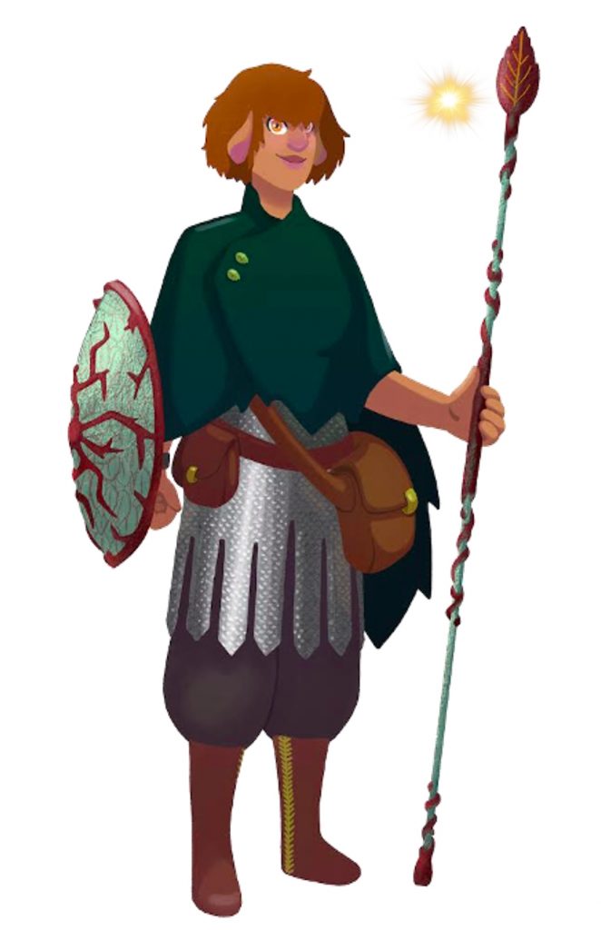 Wander joined paths with the team while both were investigating the tomb of an ancient giant. She started her journey on a mission from her god (whom she only knows as Knowledge) and her people to save them from the unknown darkness under the northern mountains. Wander comes from a large family of healers and tinkers but hasn’t traveled too far outside of her clan lands until now. She does not do well with thinking before the doing, especially when there are buttons or switches around. But she is solidly dedicated to being a help to all she can and will (apologetically) unleash pain upon threats to her clan and team.